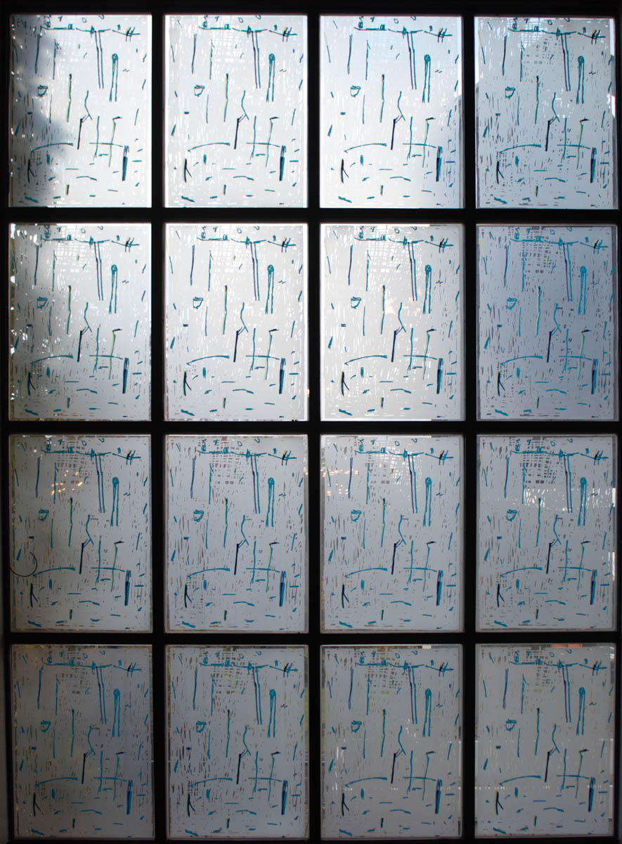 - Drei der sieben Fenster waren damals schon komplett. Bei den anderen waren lediglich die mit mattweißen Strukturen versehenen Scheiben zu sehen.